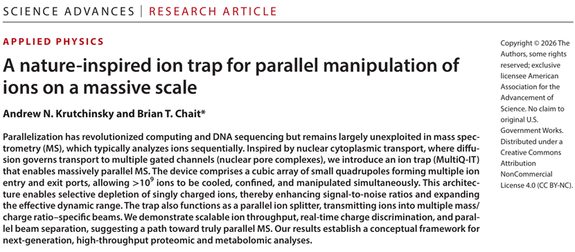 近期,洛克菲勒大学的 Andrew N. Krutchinsky 和 Brian T. Chait 在《Science Advances》上发表的 MultiQ-IT (Multi-Quadrupole Ion Trap) 技术,提供了一种打破常规的硬件解法。链接:https://www.science.org/doi/epdf/10.1126/sciadv.aec7048