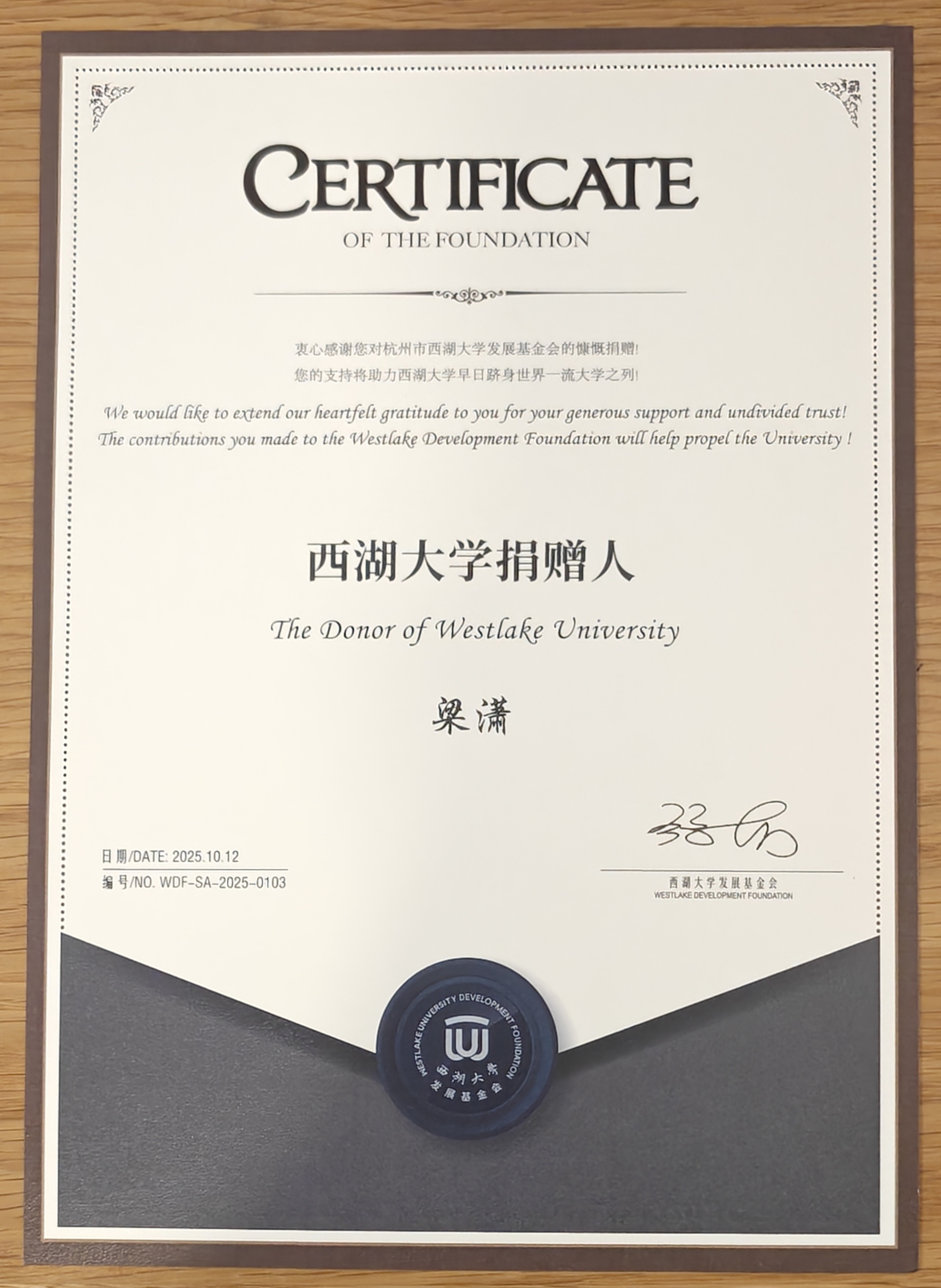 Acknowledged for an Alumni donation (20251103)