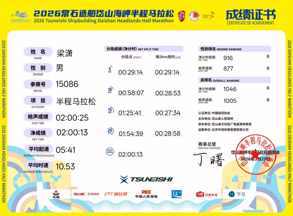 Running a half-marathon competition at Daishan (20260329)